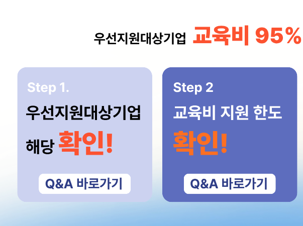 ※ 모든 결제는 기업명의로 진행되어야 하며, 개인 결제 시 환급이 불가함(환급 없이 수강 희망시 개인결제도 가능)